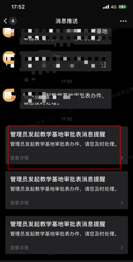 學(xué)校企業(yè)微信消息中心也會(huì)收到相應(yīng)消息