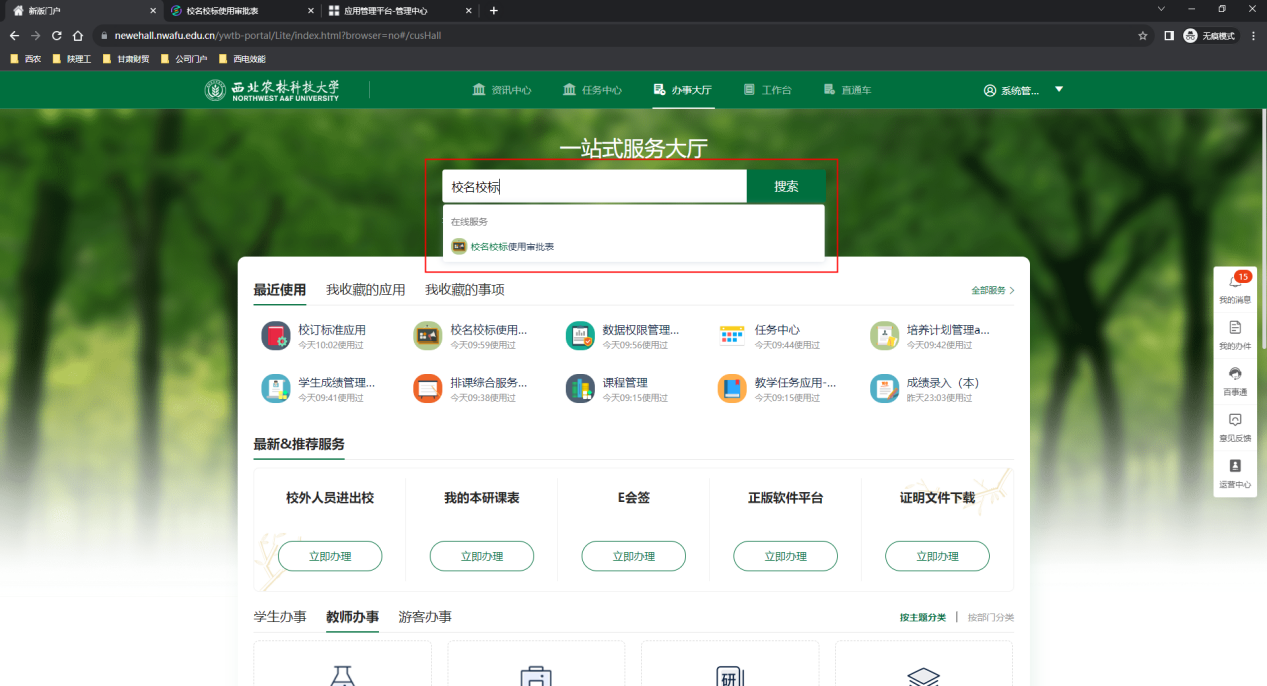 或在工作臺(tái)頁(yè)面公共服務(wù)查找“校名校標(biāo)使用審批表”應(yīng)用點(diǎn)擊進(jìn)入