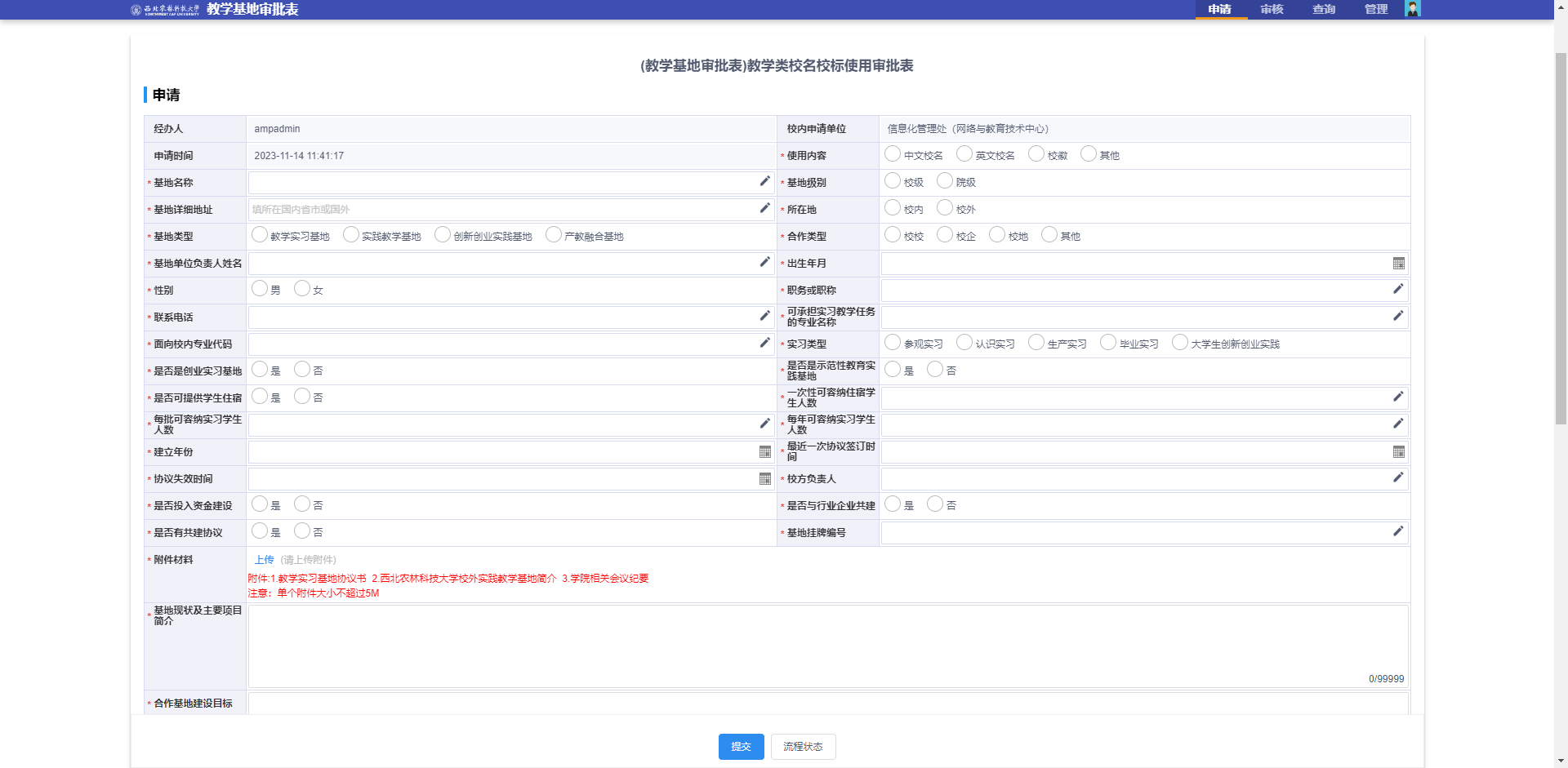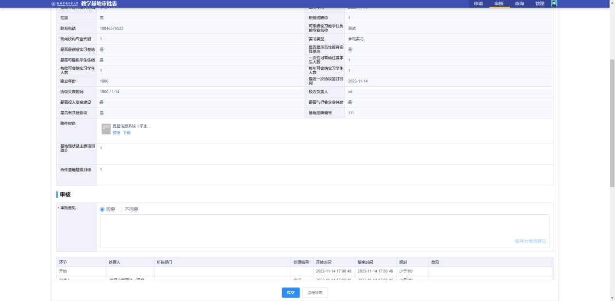 教學(xué)基地審批表申請(qǐng)界面如下圖
