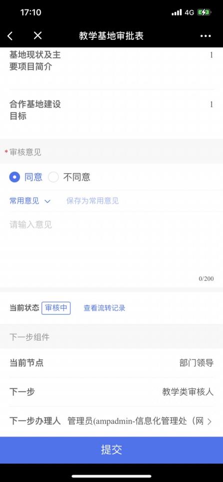 審核人可以查看申請(qǐng)人填寫的信息,若填寫信息無(wú)誤,審核意見選擇“同意”,流轉(zhuǎn)到下一步審核人,若填寫信息有誤,審核意見選擇“不同意”可返回至申請(qǐng)人。