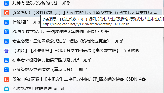 初期我高數(shù)基本就是聽張宇的基礎(chǔ)課,基本就是各種概念和簡單用法。為此我還在網(wǎng)上有搜索自己不懂的概念。這個是網(wǎng)頁收藏夾。