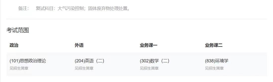①政治、②英語(學碩英一、專碩英二)、③數二、④環(huán)境學838(環(huán)境學導論+環(huán)境化學)