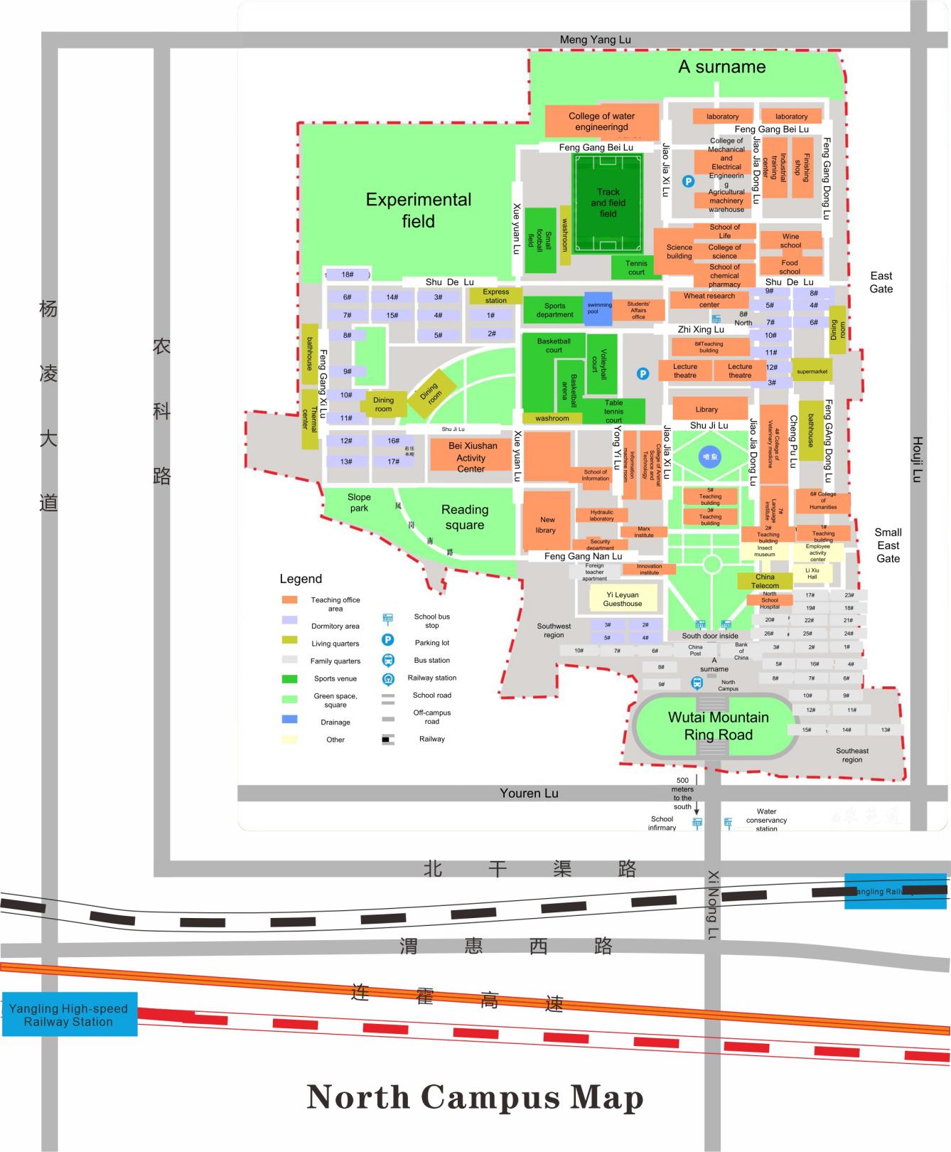 Yangling High-speed Railway Station is 2km away from the school, about 10 minutes by car.