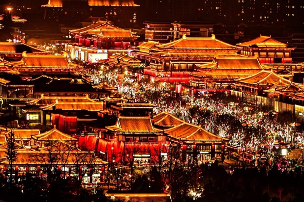 The Grand Tang Sleepless Plaza is divided into six Tang-style blocks, the largest landscape avenue in Asia, three theme cultural squares, four cultural and artistic galleries, and eight culture-tourism-trade projects. 5 billion yuan is invested in it with the pur-pose of one-stop consumer paradise such as shopping, catering, entertainment, leisure, tourism and business affairs.