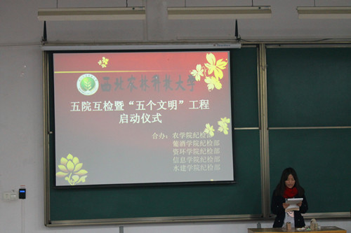 為響應(yīng)“文明教室、文明校園、文明宿舍、文明食堂、文明大學(xué)生”的五個(gè)文明工程,11月,資源環(huán)境學(xué)院聯(lián)合農(nóng)學(xué)、葡酒、信工、水建學(xué)院共同舉辦“五個(gè)文明工程”活動(dòng),包括互督互檢和禁煙漫畫標(biāo)語設(shè)計(jì)大賽,同時(shí)各院紀(jì)檢部通過夜訪活動(dòng)來進(jìn)行交流總結(jié)。本次活動(dòng)從多方面滲透到了大學(xué)生的切實(shí)生活之中,鼓勵(lì)同學(xué)們從身邊做起,做好身邊的每一件小事,在日常生活中將自身的涵養(yǎng)凸顯出來,營造健康的生活模式。