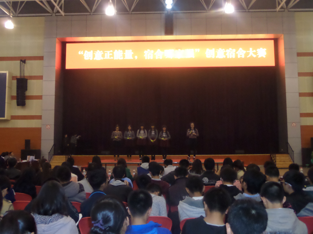 此次大賽共有10個學院的10個最佳宿舍參與角逐。比賽當晚,經(jīng)過層層篩選,脫穎而出的10個宿舍依次上臺以PPT、視頻及演唱歌曲等形式展示各具特色的宿舍風采。參賽宿舍設計創(chuàng)意新穎,內(nèi)涵豐富,體現(xiàn)出宿舍內(nèi)部的團結(jié)友愛與和諧互助,贏得了場下嘉賓和觀眾們的陣陣喝彩。