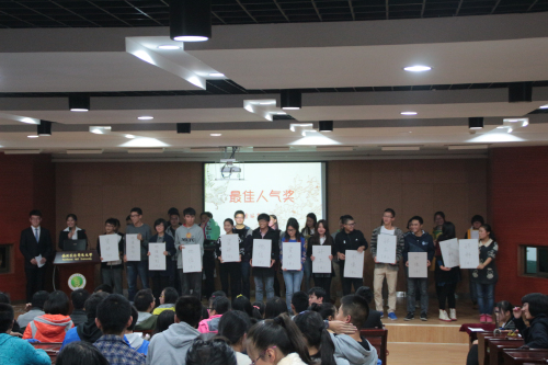 在班刊評(píng)比結(jié)束后,各班代表上臺(tái)進(jìn)行“最佳人氣獎(jiǎng)”拉票。班級(jí)代表們使出渾身解數(shù),言語(yǔ)詼諧,只為能讓同學(xué)們記住自己班級(jí)的班刊,其中資環(huán)142班表演的快板將這一環(huán)節(jié)拉上高潮。