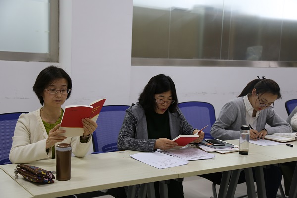 首先,黃懿梅解讀了“習(xí)近平在全國(guó)高校思想政治工作會(huì)議上發(fā)表重要講話” 并結(jié)合電視劇《人民的名義》里所演繹的教授的形象,提出高校教師里確實(shí)存在一些不好的現(xiàn)象,影響了人們對(duì)高校教師的看法,我們要認(rèn)真學(xué)習(xí)和貫徹落實(shí)全國(guó)高校思想政治工作會(huì)議精神,要嚴(yán)格踐行習(xí)近平總書(shū)記對(duì)教師提出的要求。然后,青年教師黨員宋籽霖、蔣銳分別領(lǐng)學(xué)了“堅(jiān)持走自己的高等教育發(fā)展道路”、“始終堅(jiān)持社會(huì)主義辦學(xué)方向”和“沿用好辦法 改進(jìn)老辦法 探索新辦法”等學(xué)習(xí)文件。