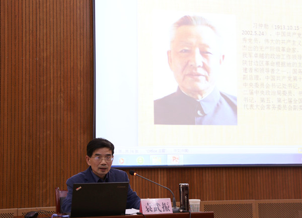 袁武振教授從接受革命思想、創(chuàng)建陜甘寧革命根據(jù)地、保衛(wèi)陜甘寧邊區(qū)、解放大西北、主政西北、“國(guó)務(wù)院大管家”、主政廣東創(chuàng)辦經(jīng)濟(jì)特區(qū)、推進(jìn)新時(shí)期黨的建設(shè)、統(tǒng)一戰(zhàn)線和民族宗教工作、注重家教家風(fēng)等十多個(gè)方面,以詳實(shí)的史料、生動(dòng)的語(yǔ)言,講述了中國(guó)共產(chǎn)黨的優(yōu)秀黨員、偉大的共產(chǎn)主義戰(zhàn)士、杰出的無(wú)產(chǎn)階級(jí)革命家習(xí)仲勛89年的光輝歲月、76年的革命歷程和他對(duì)中國(guó)革命建設(shè)及改革開放的巨大貢獻(xiàn),高度評(píng)價(jià)了習(xí)仲勛同志的革命精神和高尚品質(zhì)。他講到,在新的歷史時(shí)期,我們全黨開展“兩學(xué)一做”學(xué)習(xí)教育,應(yīng)進(jìn)一步學(xué)習(xí)、繼承和弘揚(yáng)習(xí)仲勛的革命精神,學(xué)習(xí)他堅(jiān)定理想信念不動(dòng)搖的高尚品格,學(xué)習(xí)他實(shí)事求是的工作作風(fēng),學(xué)習(xí)他一心為民的赤子情懷,學(xué)習(xí)他胸懷坦蕩、光明磊落的崇高風(fēng)范。