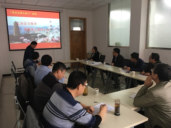 王健同志結(jié)合自己的工作,為大家講解“弘揚(yáng)延安精神,促進(jìn)水土保持工作”。佟小剛同志以2017年“兩會”為契機(jī),著重分享了他學(xué)習(xí)“兩會”的一些體會。田鵬同志從如何做一名好的高校老師切入,為大家講解“爭做一名包含正能量的黨員”,對什么是正能量?如何找回自己的正能量?如何保證自己在做一名合格黨員的同時(shí)做具有正能量的黨員?三個(gè)問題做了詳細(xì)講解。