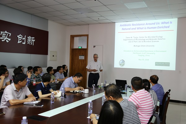 我院谷潔教授課題組近日邀請美國密歇根州立大學(xué)James Tiedje院士來我院進(jìn)行交流訪問。5月15日下午,James Tiedje院士在學(xué)院第一會(huì)議室應(yīng)邀做了題為“Antibiotic resistance around us: what is natural and what is human enriched”的學(xué)術(shù)報(bào)告。