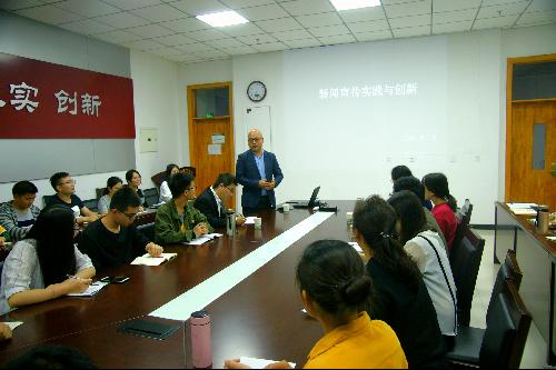 在長達(dá)2個半小時的培訓(xùn)里,靳軍老師與支部30余名師生進(jìn)行了頻繁的互動交流,鼓勵大家對如何擬一個更準(zhǔn)確生動的標(biāo)題、如何做到心中有圖等進(jìn)行了思考和探討,還現(xiàn)場模擬慰問活動讓師生們運(yùn)用所學(xué)知識練習(xí)拍攝新聞?wù)掌?/p>