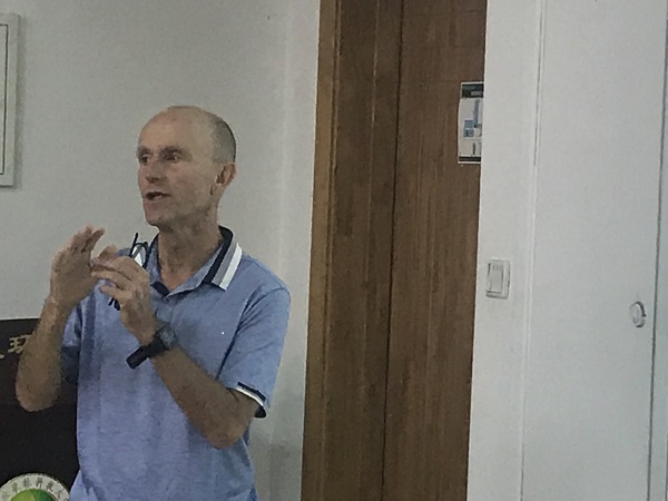 Eric Lichtfous教授首先對于法國艾克斯馬賽大學以及所在實驗室的工作進行了介紹;隨后,分別從兩個方面進行了學術(shù)匯報。第一方面講述了利用生物標記物將石油和生物分子聯(lián)合的方法,深入認識沉積物中有機質(zhì)的轉(zhuǎn)化,并進一步輔助石油勘探的工作。第二部分,Eric教授主要對13C測年的方法進行了介紹,并對此方法在土壤碳封存、可再生肥力、氣候變化、污染治理等方面意義進行了講解。