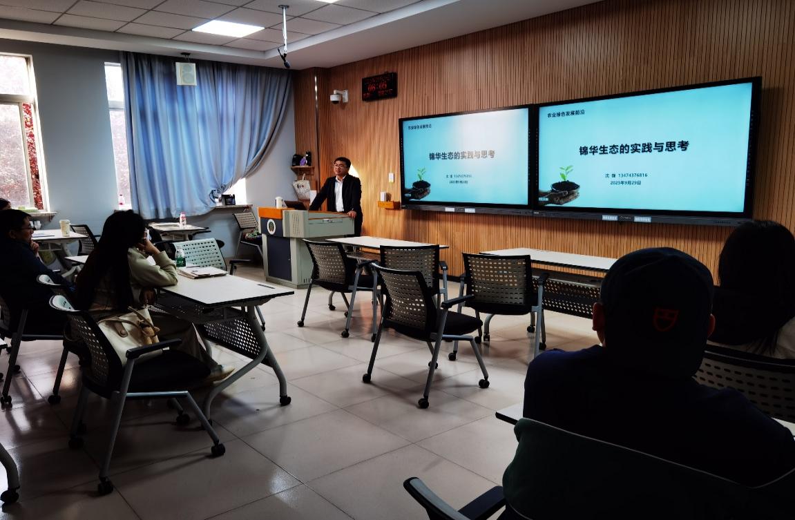 2025年9月29日上午8:00-11:40,在南校區(qū)三號樓s3208教室,沈鋒老師通過新疆現(xiàn)代農(nóng)業(yè)和綠色農(nóng)業(yè)發(fā)展現(xiàn)狀的影像資料,讓研究生對綠色農(nóng)業(yè)獲得了直觀的認(rèn)知。此外,隨著經(jīng)濟(jì)的快速發(fā)展和人民生活水平的提升,消費水需求已經(jīng)從“溫飽型”向“品質(zhì)型”轉(zhuǎn)變,基于此背景,沈老師進(jìn)一步將現(xiàn)代化農(nóng)業(yè)與服務(wù)業(yè)結(jié)合的新型農(nóng)業(yè)產(chǎn)業(yè)化模式進(jìn)項了全面介紹,為研究生拓展了新的學(xué)術(shù)視角。最后,沈老師更是傾囊相授,基于自身科研實踐經(jīng)歷,在論文寫作與投稿、科研學(xué)習(xí)與規(guī)劃等方面給予了研究生全面而實用的指導(dǎo)和建議,幫助研究生在汲取理論知識的同時也積累了寶貴的實踐經(jīng)驗。